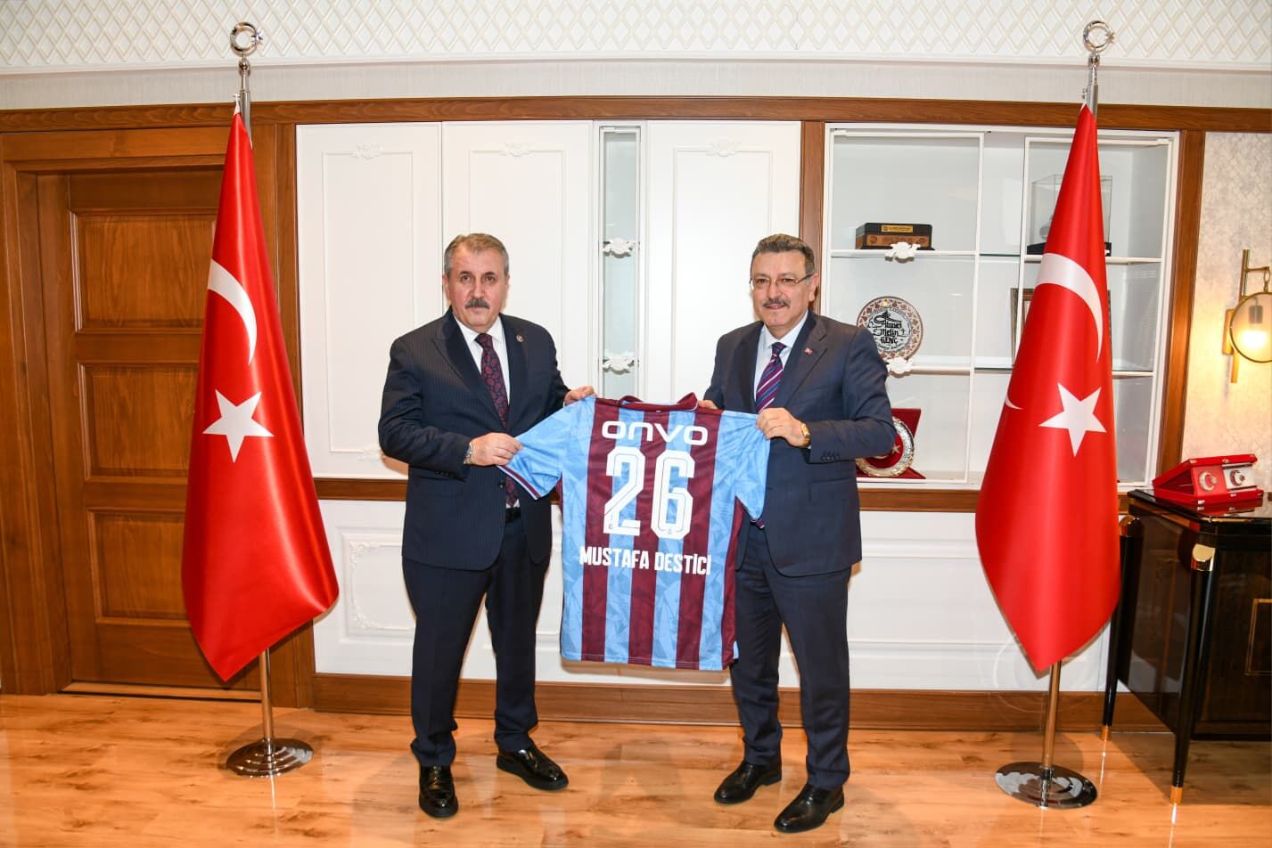 Büyük Birlik Partisi (BBP) Genel Başkanı Mustafa Destici, Trabzon Büyükşehir Belediye Başkanı Ahmet Metin Genç'i ziyaret etti. Büyükşehir Belediyesi'nin Atapark’taki ana hizmet binasında gerçekleşen ziyarette Destici’ye, eski Trabzon Belediye Başkanı Asım Aykan, BBP İl Başkanı Adem Aydın ve partililer eşlik etti.