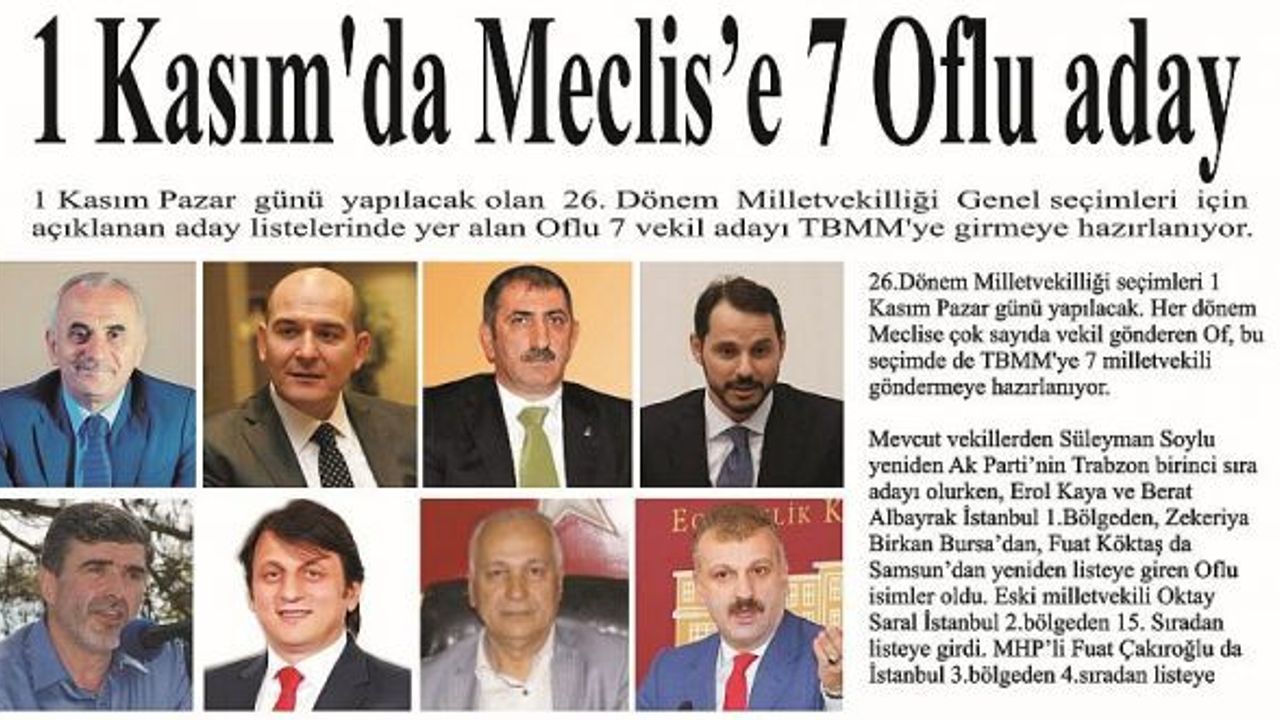 1 Kasım'da meclise 7 Oflu aday