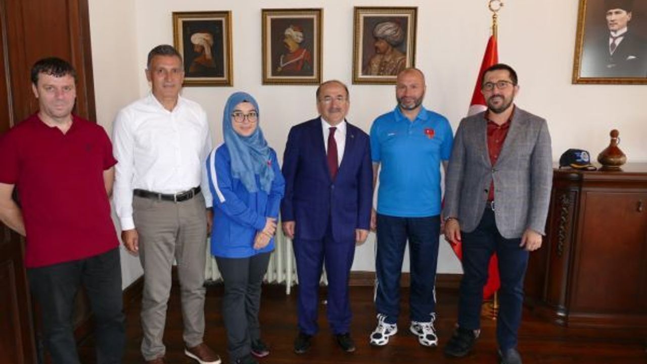 Başkan Gümrükçüoğlu şampiyon kareteciyi altınla öd
