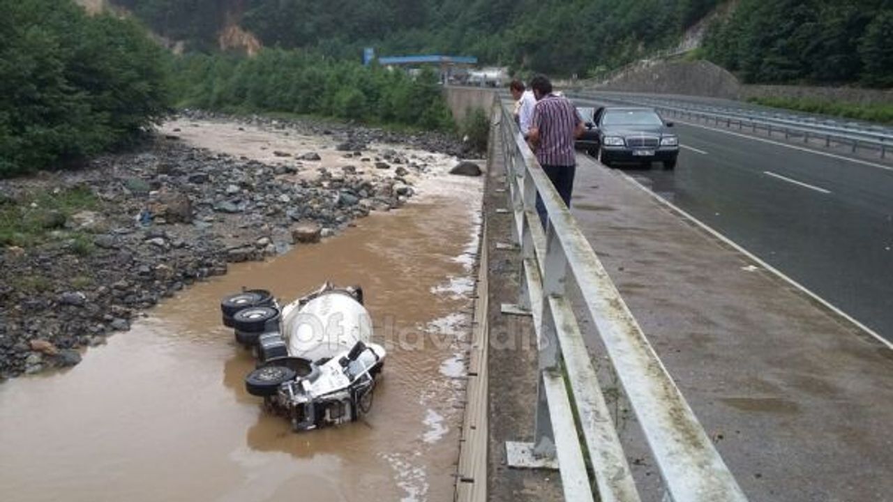 Beton Mikseri dereye uçtu, sürücüsü yaralandı