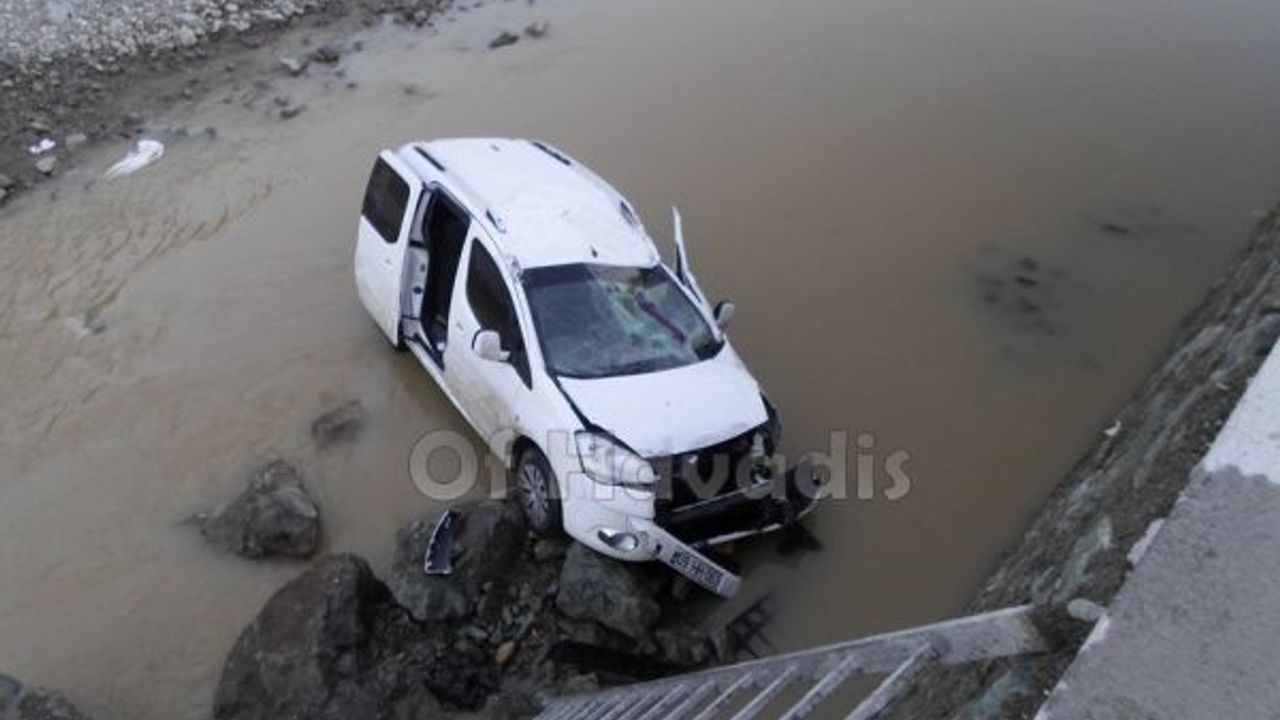 Kapalı yola giren araç Solaklı Deresine uçtu