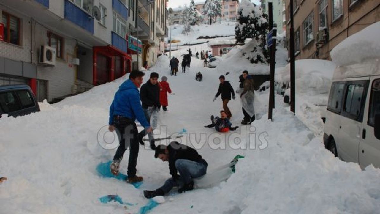 Of'ta çocukların kar keyfi